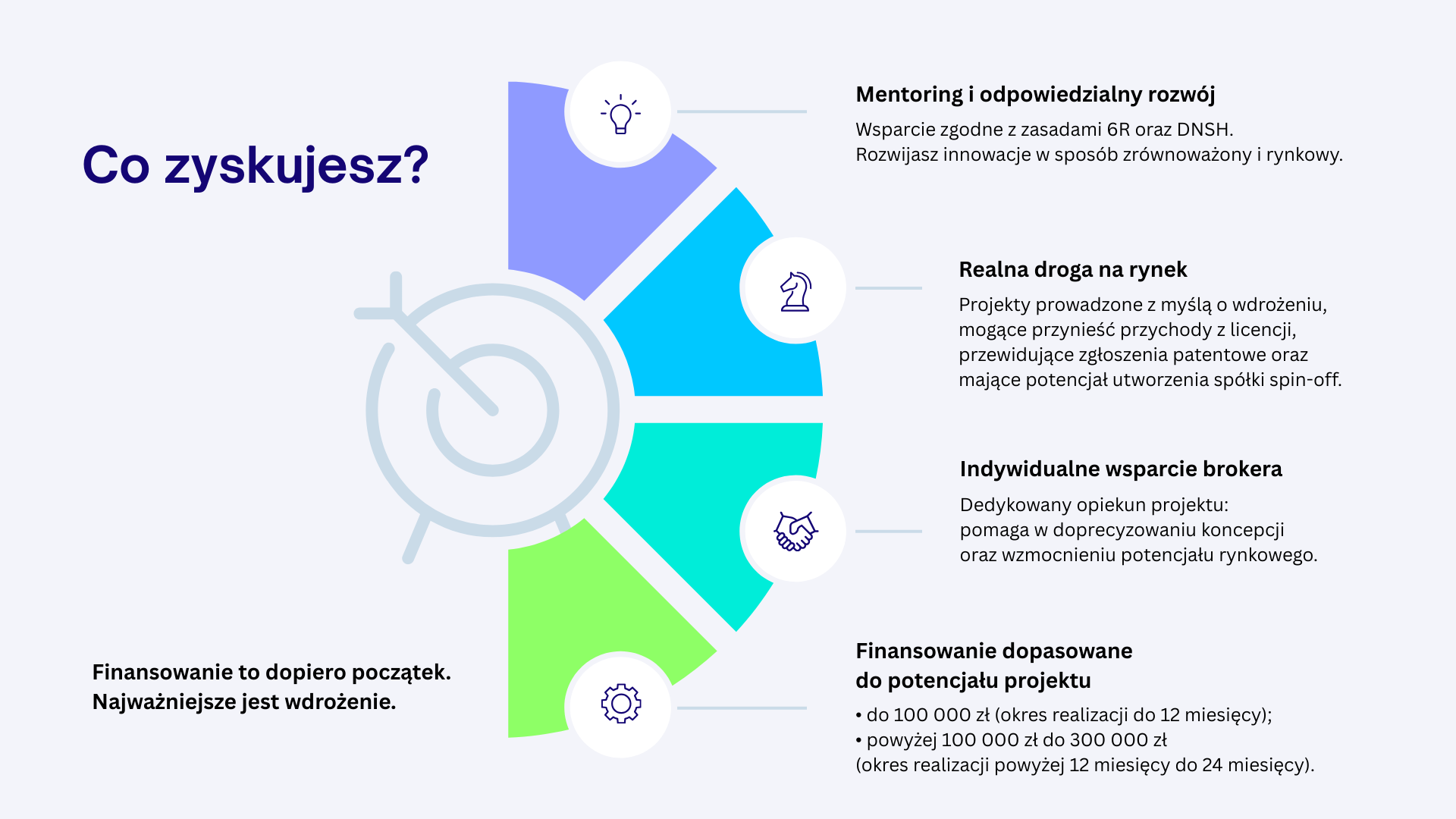 Od nauki → przez wdrożenie → do komercjalizacji.